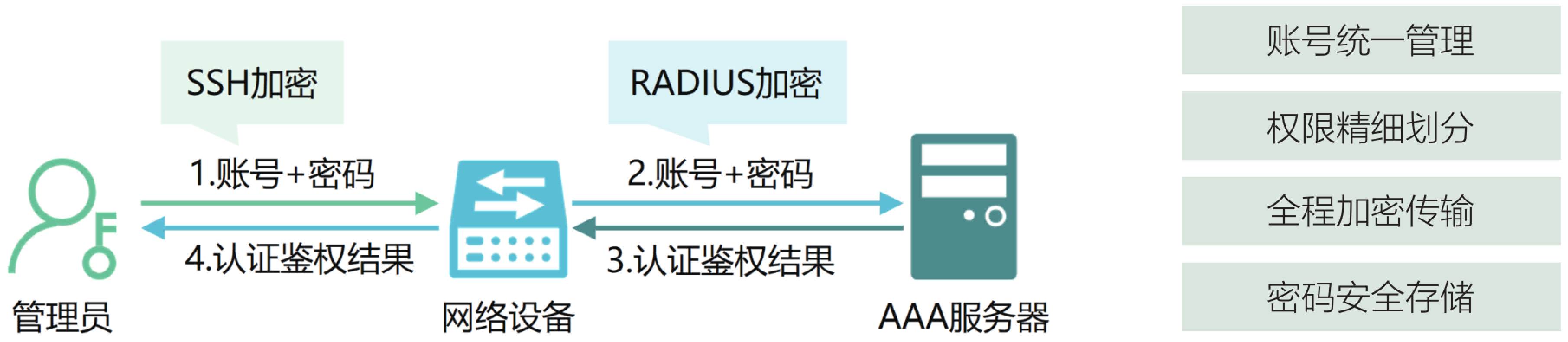 網(wǎng)絡(luò)設(shè)備安全管理解決方案用于對(duì)網(wǎng)絡(luò)設(shè)備的認(rèn)證進(jìn)行集中管理,將網(wǎng)絡(luò)設(shè)備的認(rèn)證從設(shè)備本地驗(yàn)證遷移到專用的 AAA 服務(wù)器上,由 AAA 服務(wù)器進(jìn)行統(tǒng)一認(rèn)證鑒權(quán)及日志管理,結(jié)合堡壘機(jī)對(duì)用戶操作進(jìn)行審計(jì),提高網(wǎng)絡(luò)設(shè)備管理的安全性,滿足網(wǎng)絡(luò)安全等級(jí)保護(hù)要求。